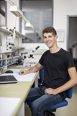 I chose natural sciences from the 6th grade in school and was particularly interested in chemistry. After one week of trial internship in the laboratory at PI, I knew that this was where I wanted to do my apprenticeship. I am currently in my second year of training as a test technologist and by now I can independently decide on the tasks that need to be done throughout the day. It is great to accompany the development of a product from the start to the end. The greatest incentive every day is the feeling of success when our developments come to fruition. When I exchange my experience with other test technologists at school, I always notice how an apprenticeship with PI Ceramic is really something special: The working environment is very welcoming, I felt comfortable from the very beginning. And what I like most of all, is the feeling that even as an apprentice my knowledge and commitment are very much appreciated here – and that I can make a difference!