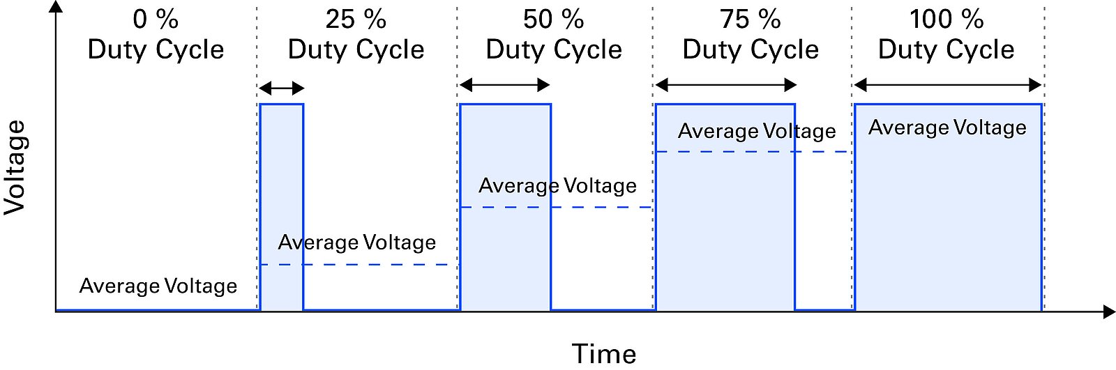 PWM-controlled motors allow control of the (motor) performance with a high-frequency-signal. This means that the power signal can be separated from the digital control signal.
