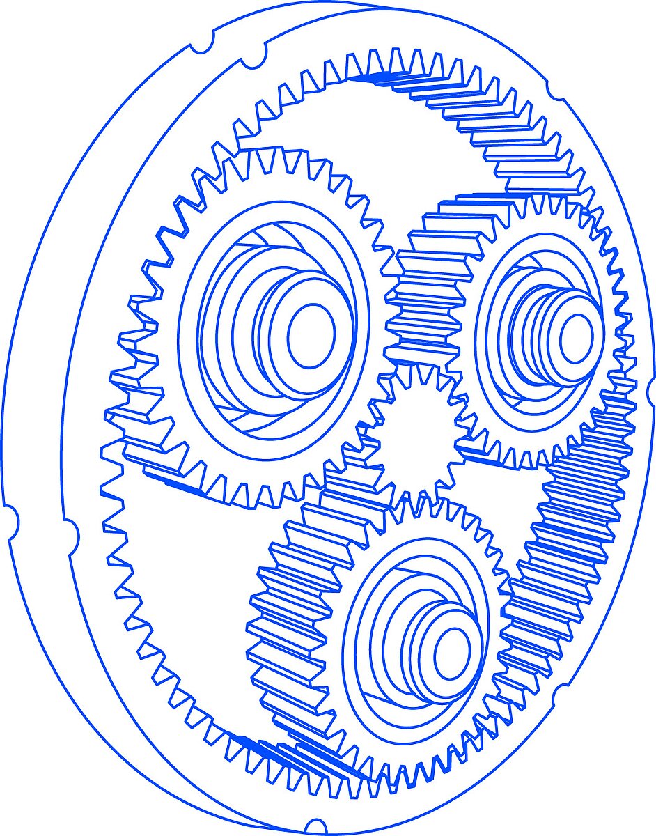 Planetary gears consist of a central sun wheel connected to a shaft, and other planet wheels that are located within a ring wheel. They are suitable for transferring the highest torque because the load is distributed via several toothed wheels. In this manner, high gear ratios can be realized in very compact assembly spaces. Often, the input stage's toothed wheels are made of a synthetic material to reduce high speed noises. For applications in vacuum, high temperatures or for very high torques, the input stage is preferably made of steel. In addition to spur gears, planetary gears are generally used for the gear motors in PI's linear stages.