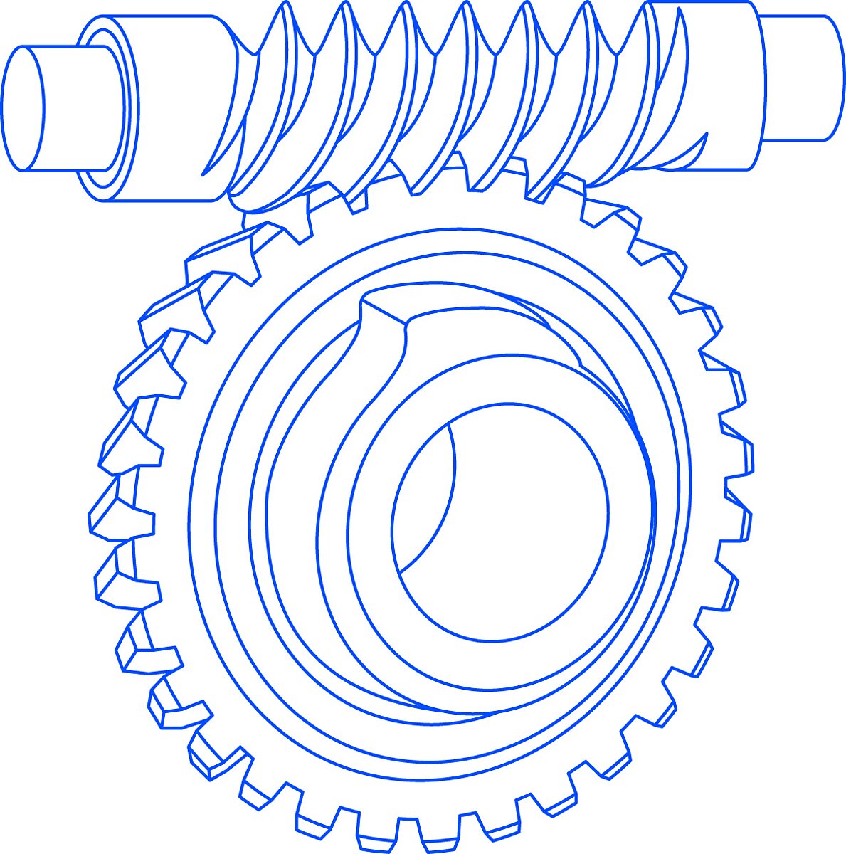 Worm gears consist of a shaft with helical mount and a worm wheel. The force is transferred by sliding friction at a right angle. For this reason, the worm shaft has high self-locking forces making additional brakes in some applications unnecessary. Sliding friction however, causes a low degree of efficiency, high wear, and potentially high temperatures. Typically, worm gears can achieve high gear ratios at one translation level, which makes them comparatively inexpensive. PI often uses worm gears for rotation stages because they transmit motion at a right angle. This allows lateral alignment of the motor on the rotation stage.