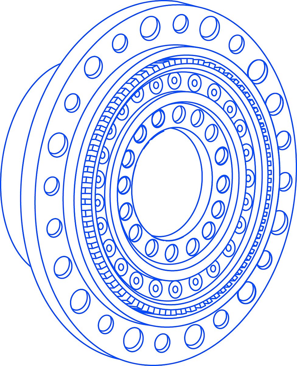Harmonic drive gears, are distinguished by the elastic properties of the transmission element, allowing for high transmission gear ratios, high torque capacities, high linear torsional stiffness, high degrees of efficiency as well as play-free operation. The elastic transmission element is an elliptical disc that deforms a thin steel bush with external teeth. The steel bush is located on an outer ring with ball bearing and internal teeth. When deformation occurs, the internal and external teeth interlock play-free in the area of the larger elliptical axis. Additionally, harmonic drive gears offer the possibility of using a central hollow shaft; e.g., for cables, shafts, or laser beams. However, these gears are comparatively expensive due to their complex, compact, and maintenance-free setup. PI sometimes uses harmonic drive gears for customized solutions to achieve particularly high positioning accuracy and repeatability thanks to the zero-play characteristic of these gears.