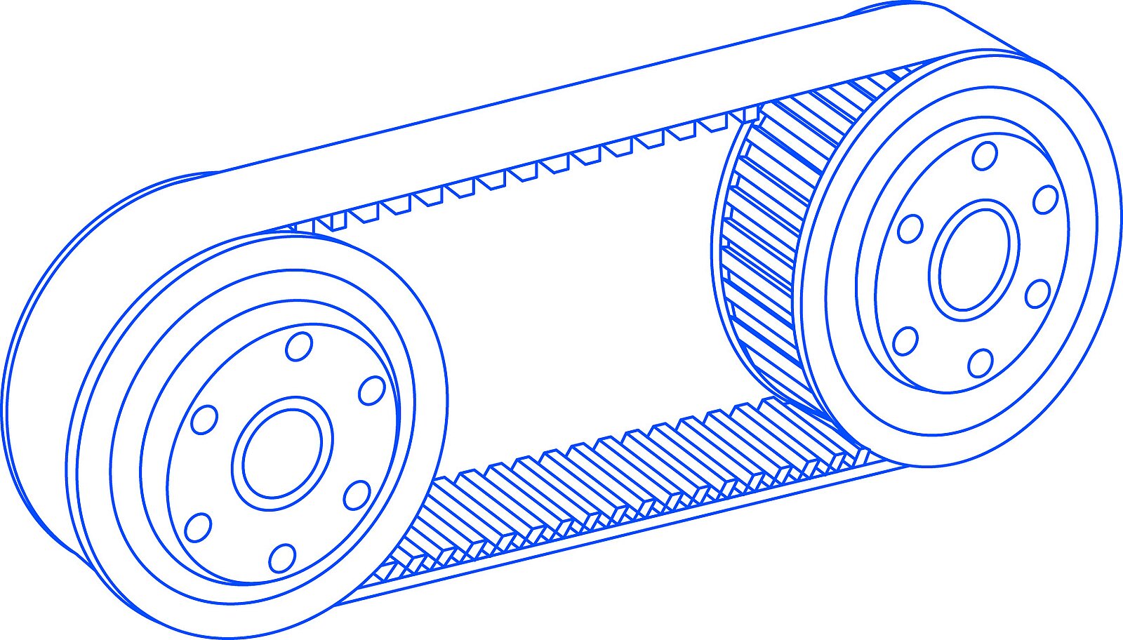 Belt drives consist of two gearwheels connected to each other by a belt. In this way, larger shaft distances can be bridged and higher peripheral speeds can be realized. Maintenance tasks usually involve a belt change or restressing of the belt. The belt limits the temperature range. The occurring pull and push forces usually cause larger shaft loads. PI often uses belt gears in compact positioning stages; e.g., Z or linear stages where the drive is "folded" on the side. Belt drives are suitable for applications in a vacuum up to 10-6 hPa.