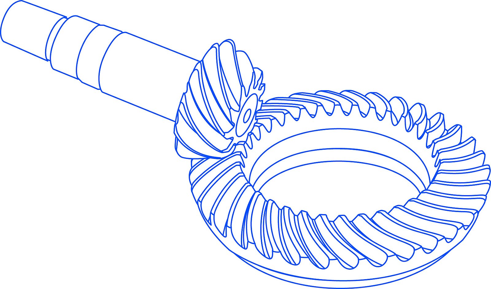 Bevel gears as shown in figure 16 consist of a bevel pinion and a toothed wheel with respective angled teeth. Similar to the worm gear, the energy is transferred at a right angle, but reaches higher torque capacities. High gear ratios can only be achieved with additional spur gear stages. The occurring rolling contact is advantageous. This makes bevel gears low-wear and more efficient than worm gears. However, they are often more expensive. PI deploys bevel gears in customized rotation stages.