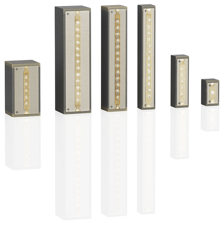 Operating voltage -20 to 120 V. Ceramic insulation, polymer-free. Insensitive to humidity. Excellent temperature stability. UHV-compatible to 10-9 hPa, no outgassing, high bakeout temperature. Ideal for dynamic operation. Flexible thanks to numerous designs. Encapsulated versions for operation in splash water or oil.
