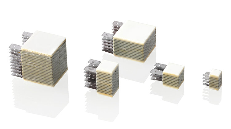 • Operating voltage range, displacement, layer thickness, cross-sectional dimension