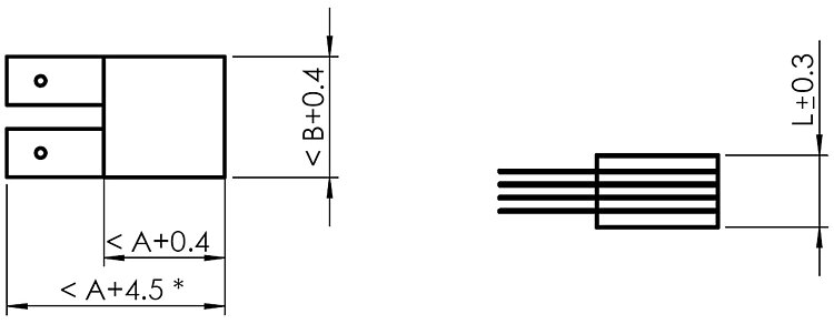 PICA Shear piezo actuator; PICA Shear piezo actuator drive; 3 µm travel range (open loop); 3 mm × 3 mm surface; 4.4 mm length; vacuum-compatible to 10⁻⁹ hPa; operating temperature up to -269 °C; solderable contacts