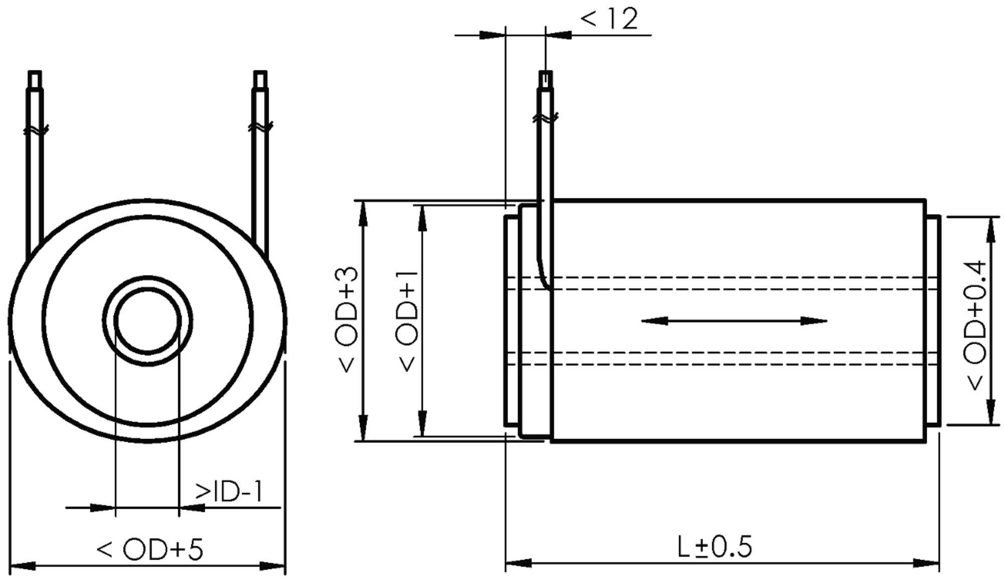| Travel range | Diameter OD | Diameter ID | Length L | Blocking force | Stiffness | Electrical capacitance | Resonant frequency | |