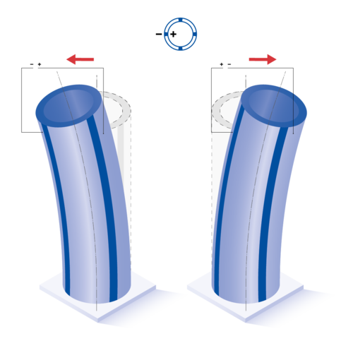 For example, for tubes with positive polarization direction on the inside and negative polarization direction on the outside, the deflection directions are as follows: