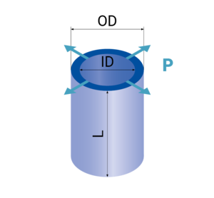 All formulas shown are valid for idealized geometries (ID, OD >> t). Tubes with negative polarization direction as well as internal ground (GND) show opposite displacement directions.
